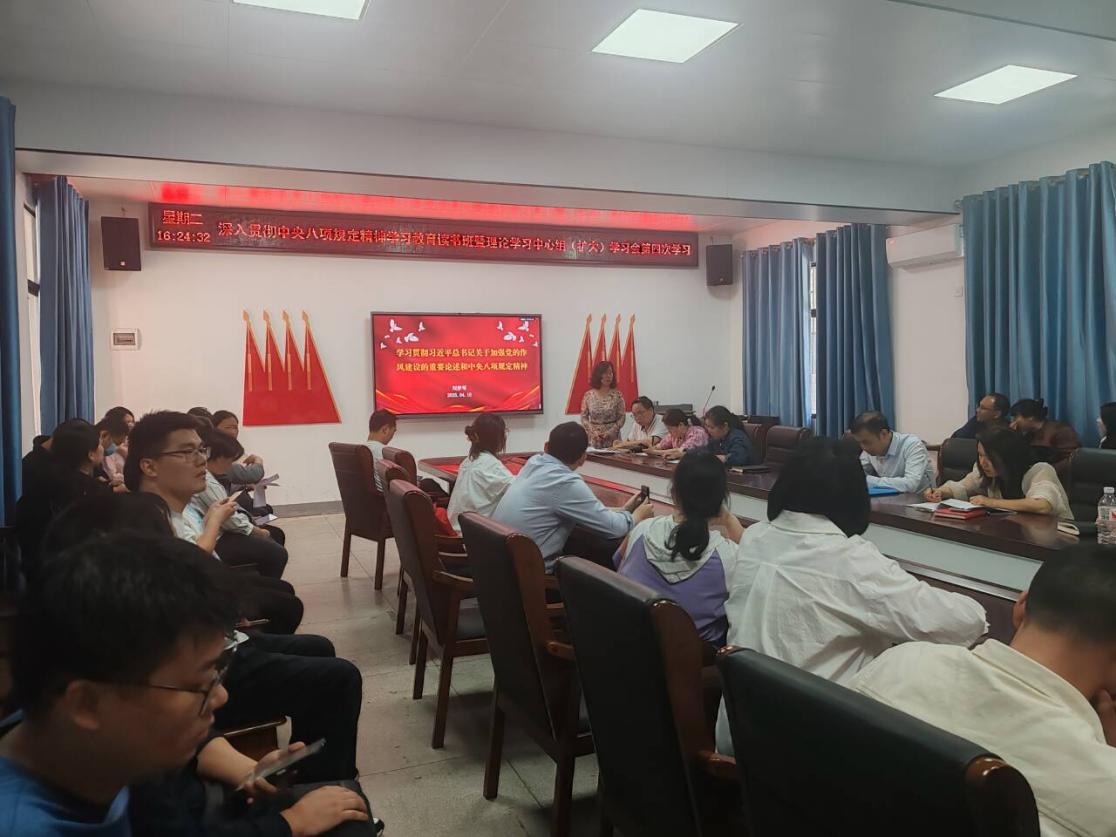 4月15日,公司举行深入贯彻中央八项规定精神学习教育读书班暨理论中心组(扩大)学习会第四次集体学习。党总支书记刘梦琴主持会议并给全体教师作《学习贯彻习近平总书记关于党的作风建设的重要论述和中央八项规定精神》的学习辅导报告。