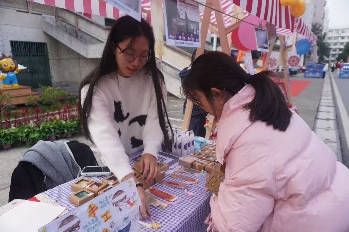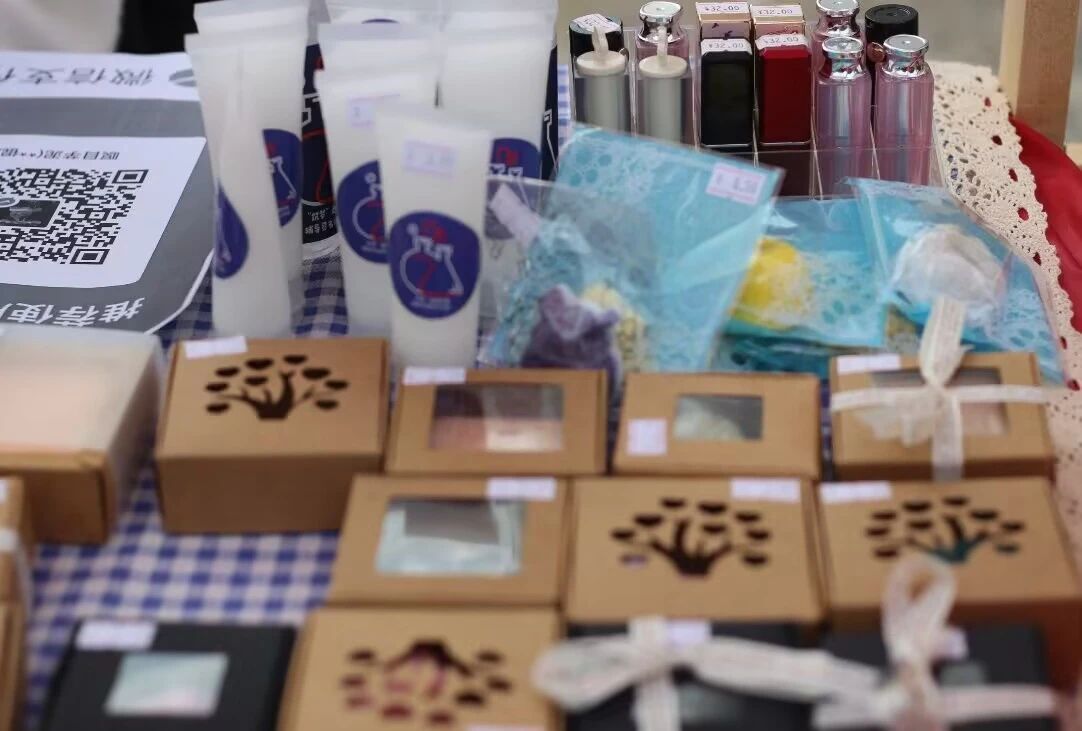 此次活动中,萤火虫志愿服务社匠心独运,推出了由志愿者们自主制作的手工皂、护手霜、叶脉书签及免洗洗手液,充分展示了公司学子的实践动手能力。