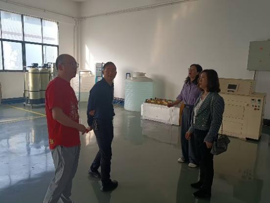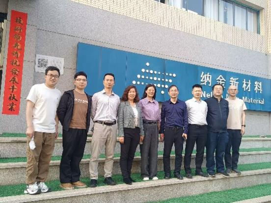 在纳金新材料有限公司,公司领导一行实地参观了样品表征实验室与生产车间,听取了企业负责人关于企业发展定位、行业市场分析及未来规划的汇报。双方围绕新材料研发、技术攻关及毕业生实习、就业等议题展开了讨论交流,重点探讨了公司教师参与企业技术研发的合作模式。