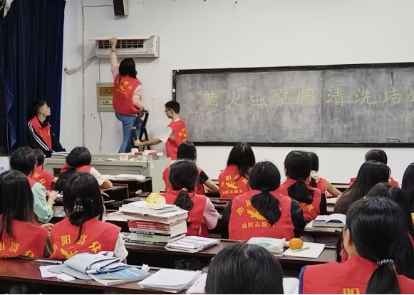 活动当日,志愿者们携带梯子、抹布、纸巾等专业工具,分成了多个小组前往宿舍楼。在公司志愿者的带领下,各小组分工明确、配合有序。在清洗过程中,志愿者们架起扶梯,小心拆卸空调外壳,将积满灰尘的滤网清洗干净。面对部分使用年限长、积尘顽固的空调,公司辅助志愿者现场示范,通过浸泡、刷洗、擦净等多道工序处理,确保清洁彻底。尽管清洗过程中灰尘飞扬、汗流浃背,但志愿者们始终保持严谨态度,完成了多台空调的深度清洁。