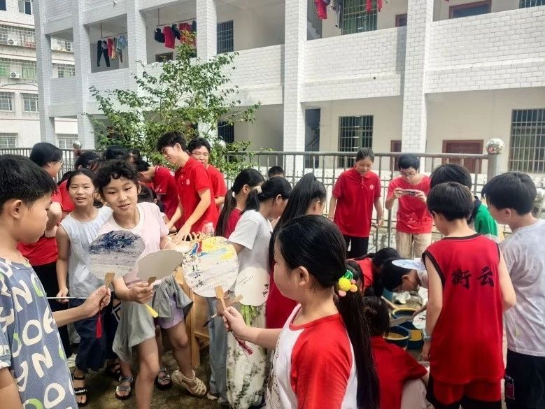 除了化学实验展示,活动还设置了趣味互动区域。各年级孩子们在志愿者的引导下,通过团结、协作和智慧,成功挑战了“国土拼图”“飞行棋”,“多巴胺科普乐园”地绘等一个个小游戏,并获得奖章。孩子们凭奖章奔向“漆扇”展位挑选心仪的非遗“漆扇”,看到空白的漆扇在由不同颜色的油漆和水的交织下,创造出一幅幅灵动的画面,孩子们露出开心的笑容。随着金色的阳光洒满大地,校园里的奔跑声、欢笑声与呼喊声,汇聚成了一片欢乐的海洋。
