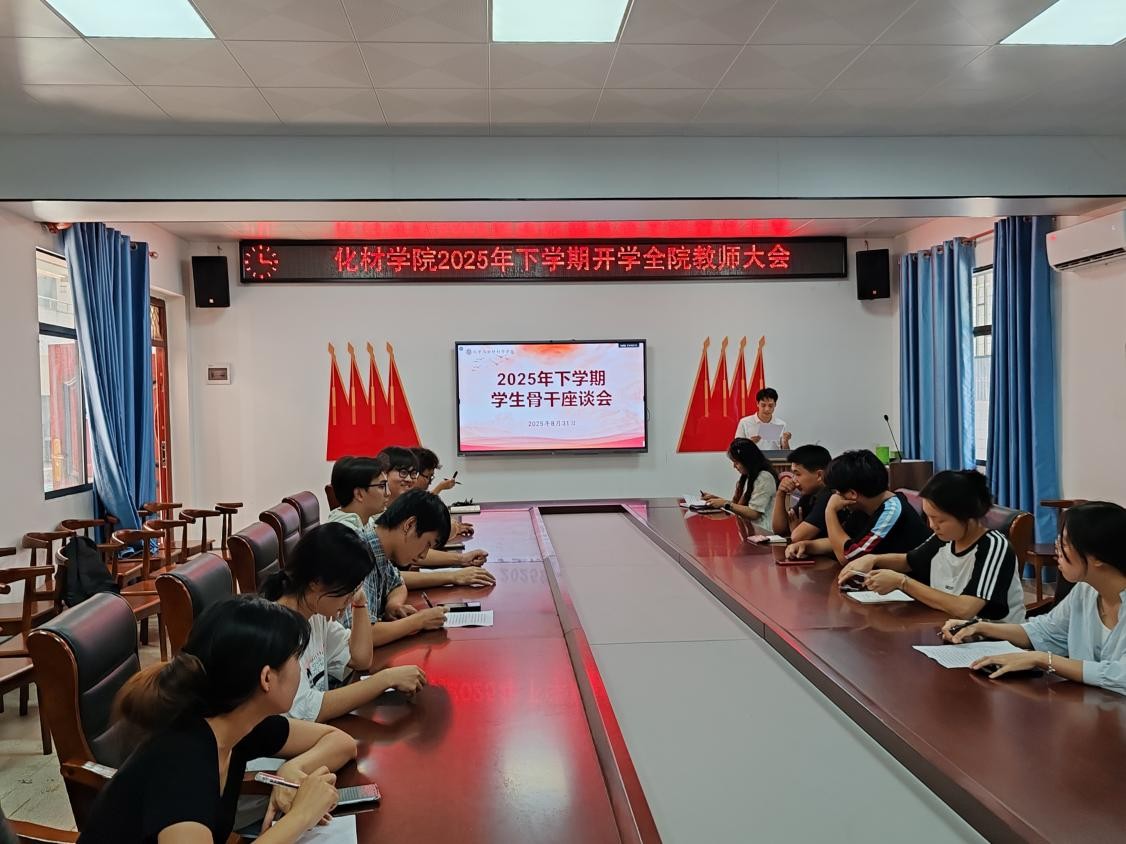 为进一步加强员工骨干队伍建设,充分发挥员工骨干在自我管理、自我服务中的引领作用,确保新学期公司各项工作正常开展,公司于8月31日下午三点在化学楼105召开2025年下学期员工骨干座谈会。党总支副书记阳曼、学工办主任唐升、辅导员姚尽沙、谢峥、钟彪以及公司团委员工分会各部门部长出席会议。