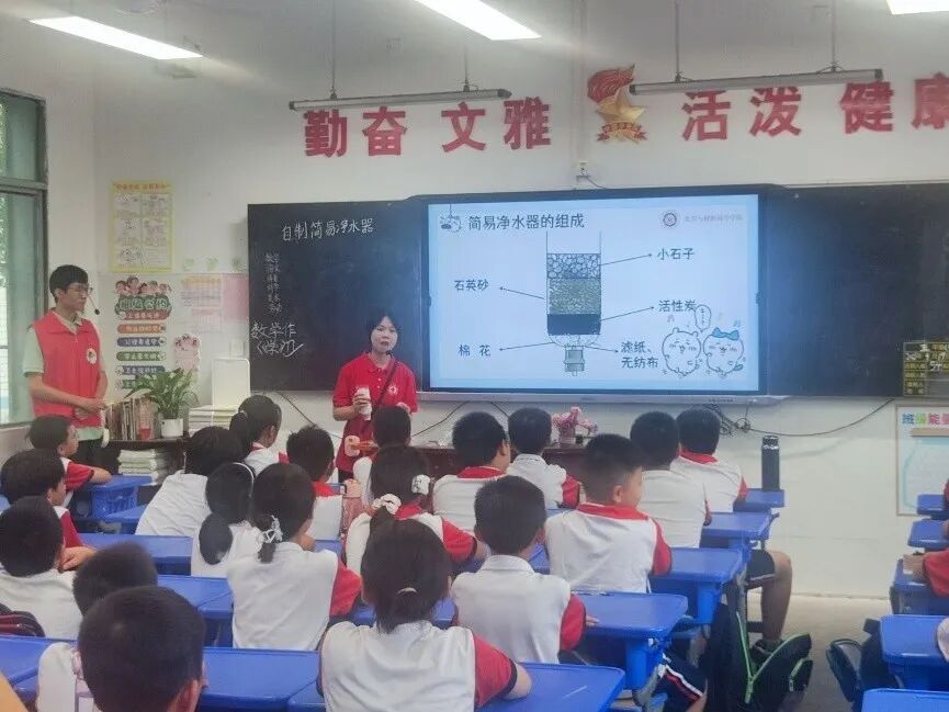 2025年9月19日下午,tyc33455cc太阳集团“铜”心“碳”索科普队师生走进衡阳市实验小学,开展以“美丽中国,志愿有我——绿色卫士下三湘”为主题的科普志愿服务活动。通过理论讲解和分组实验,志愿者为五年级孩子们带来的趣味化学实验课《自制简易净水器》,拉近了孩子们与科学的距离。