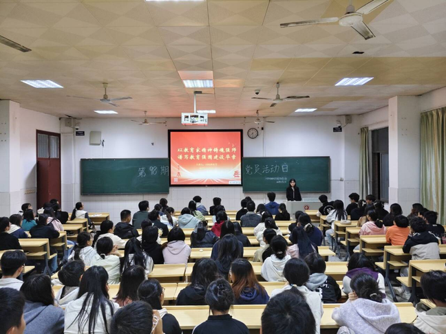 张莹同学的分享从“中国教育的成绩与蓝图”“建设教育强国的重要意义”“榜样精神的引领”“青年一代的使命担当”四个方面展开。新时代广大人民教师弘扬和践行教育家精神,潜心教书育人、培根铸魂,躬身践行初心使命的生动实践,充分彰显了教育强国建设的教师担当。“木铎金声,滋兰树蕙”,这种教育家精神正在新时代青年的血脉中生根,2035年建成教育强国的目标,不是遥远的蓝图,而是正在召唤我们的时代使命,青年一代既是这一进程的见证者,更是直接的建设者,我们应以实际行动让越来越多青春之花绽放在祖国教育事业最需要的地方,为教育强国建设谱写属于我们这一代青年的精彩华章!