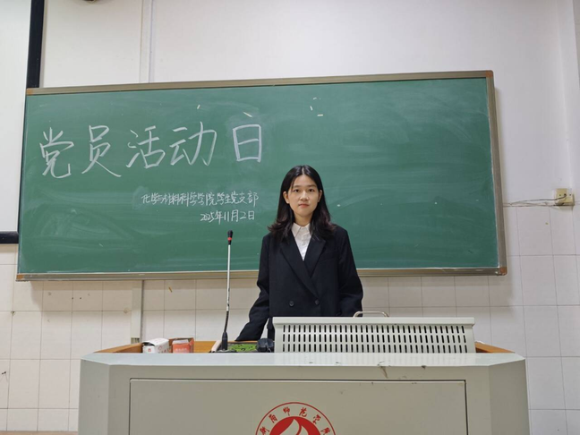 2025年11月2日晚,tyc33455cc太阳集团员工党支部第九十八期“党员学习日”活动于行知楼601开展,2303班张莹同学以《以教育家精神铸魂强师 谱写教育强国建设华章》为题与全体员工党员和学习积极分子分享了她的学习心得。