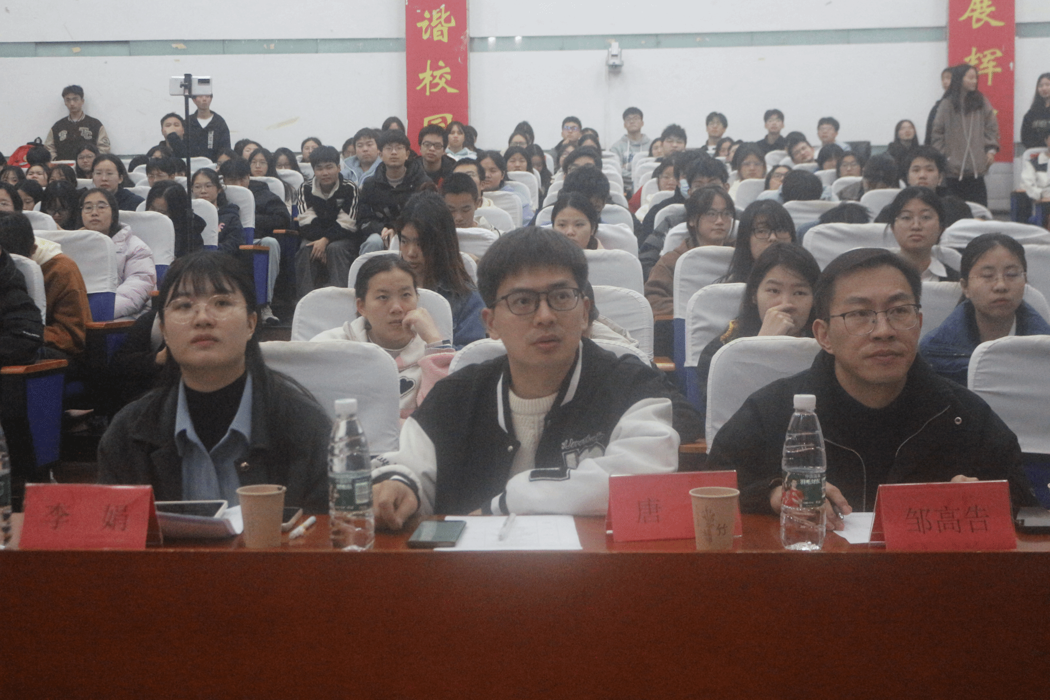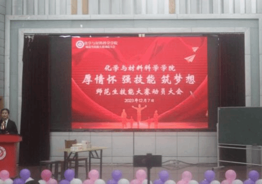 2023年12月7日晚,公司于tyc33455cc太阳集团西校区模拟法庭举办师范生技能大赛动员大会,衡阳市成章实验中学化学教研组组长邹高告及唐清、李娟、陈畅畅三位老师特邀出席,公司党总支书记刘梦琴、经理许志锋、党总支副书记阳曼、副经理付伟伟、孙俊彬、学工办主任唐升、毛芳芳老师出席活动现场,公司全体2021级化学师范专业员工现场聆听。