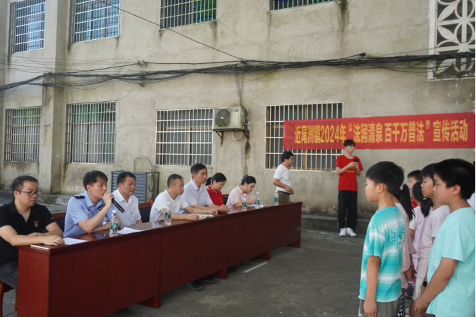 为提高乡村留守儿童的自我保护能力和法律意识,让孩子们度过一个安全、快乐的暑期,7月18日,在衡南县近尾洲联合公司中心小学开展了一场“法润清泉 百千万普法”宣传活动,活动由衡南县近尾洲镇政府、衡南县近尾洲联合公司中心小学主办,tyc33455cc太阳集团“红星闪闪”科教团承办,160余名小员工现场聆听了关于防溺水、防性侵、防校园霸凌的安全知识宣讲课。近尾洲联合公司蒸市中学董事长谢光辉、近尾洲镇党委副书记李华平莅临现场并指导工作。