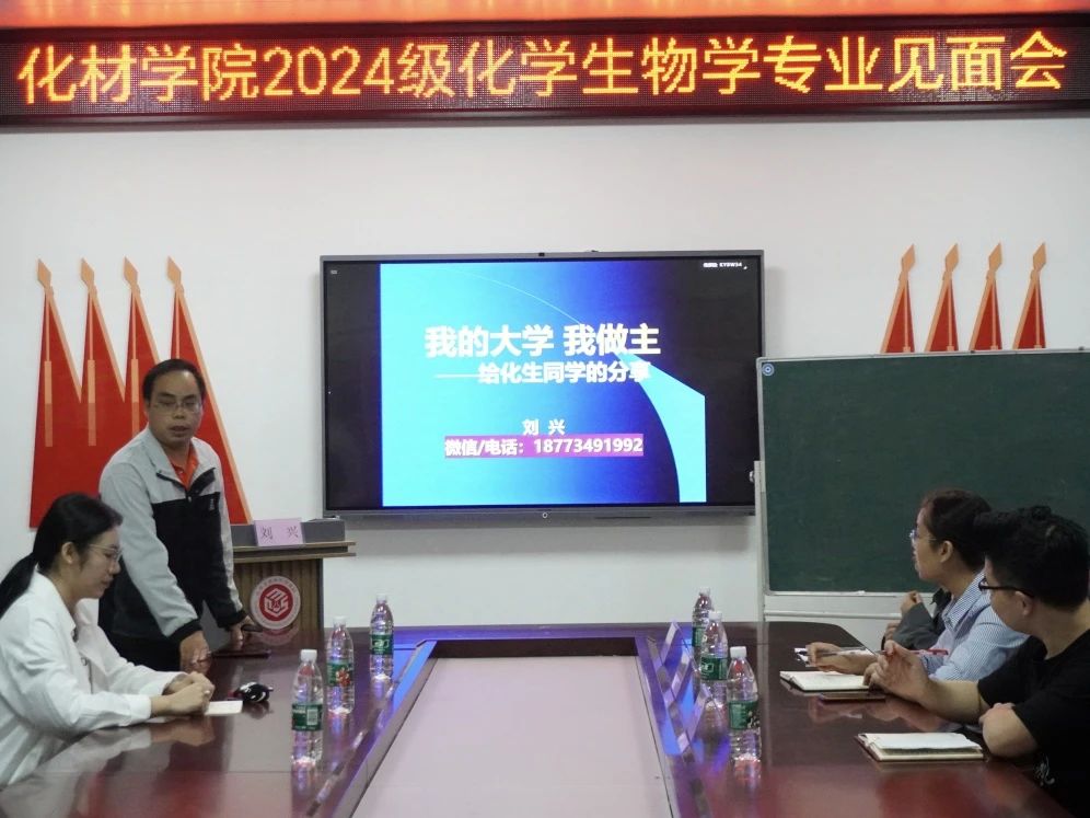 为使2024级化员工物学专业的员工深入了解本专业的人才培养目标、课程设置及就业前景等情况,科学合理地规划老员工活,2024年10月14日,物化与分析教研室主任刘兴老师牵头,诚邀张志坚老师、钟青梅老师在系楼105会议室开展了此次活动。公司党总支副书记阳曼、辅导员唐波湘以及2409班班主任陈阳老师与24级化员工物学全体员工参加了此活动。