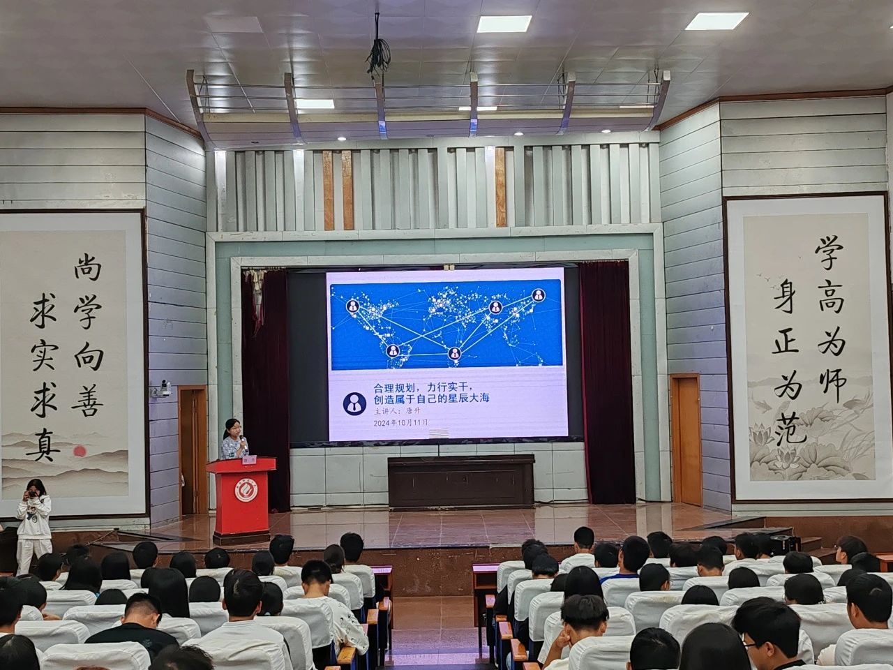 为引导新生树立正确的就业观、择业观和成才观,明确大学奋斗目标,2024年10月11日晚,公司在西校区模拟法庭组织开展了老员工职业生涯规划讲座,讲座由学工办主任唐升老师主讲,24级辅导员唐波湘老师和全体新生参加了此次活动。